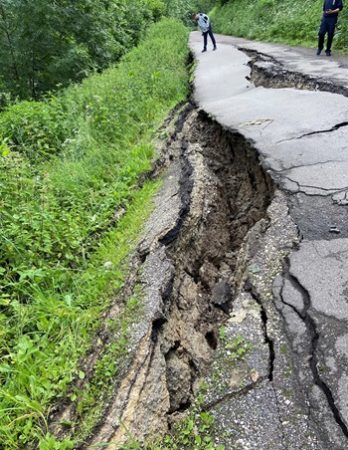 Fotos (Stadt Geislingen): Der Kolpingweg ist abgerutscht. Die Straße ist derzeit mit einer Folie abgedeckt,um weiteres Eindringen von Wasser zu verhindern.