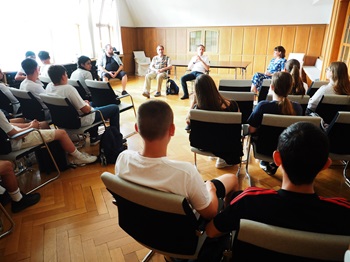 Foto (Stadt Uhingen): 29 Schülerinnen und Schüler der Uhinger Haldenberg-Realschule informieren sich im Rathaus über die Maßnahmen,die die Stadt in Sachen Nachhaltigkeit unternimmt.