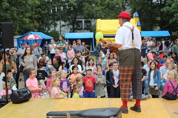 Foto (Bildquelle: Stadt Eislingen): Auch er darf nicht fehlen: Clown Clip. Dieses Mal jedoch nicht auf der Bühne,sondern im Getümmel.