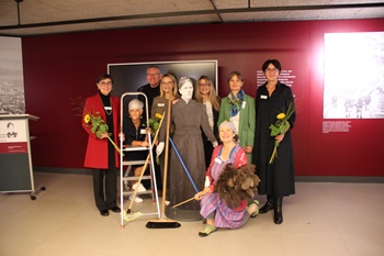 In einer lockeren Atmosphäre drehte sich alles um die Themen Stimme,Präsenz und Vernetzung. Dazu war die Kabarettistin Sabine Becker-Brauer als Expertin für Stimmtraining geladen,die als Putzfrau Erna Läpple in beeindruckender Weise durch das Programm „fegte“. In einem Mix aus Improvisation,Stand-up-Comedy,Animation und Kabarett-Elementen brachte sie den Teilnehmerinnen die Geschichte des Friedericke-Wackler-Museums näher und schaffte dazu ein tolle Überleitung zum Thema “Starke Frauen – Starke Stimmen”. Die Teilnehmerinnen wurden spielerisch und mit einer Prise Humor durch verschiedene Übungen zur Verbesserung von Sprechweise,Atmung,Artikulation,Körperhaltung und Stimmkraft herangeführt. Diese praktischen Ansätze ermöglichten es den Frauen,auch über größere Entfernungen hinweg klar und deutlich zu kommunizieren.