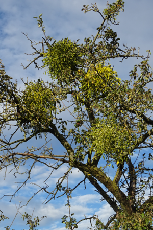 Auf Grund von vernachlässigter Baumpflege und günstigen klimatischen Bedingungen haben sich Misteln auf Obstbäumen in den vergangenen Jahren stark ausgebreitet. Die Mistel ist ein sogenannter Halbschmarotzer und entzieht dem Baum Wasser und Nährstoffe.