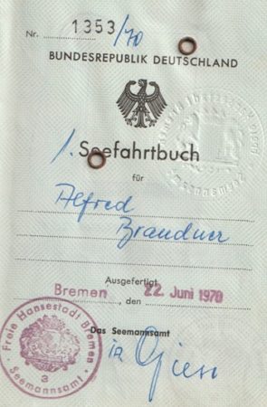 Bootsmann Mau,ein erfahrener Seebär,der bereits auf Großseglern die Welt umsegelt hat,leitete unser Seminar. Zuvor war er bereits Bootsmann auf dem zivilen Segelschulschiff Deutschland,das im regulären Ausbildungsbetrieb genutzt wurde. An seinem ständigen Liegeplatz an der Kleinen Weser in Bremen-Woltmershausen fungierte es als stationäre Seemannsschule,wo die gesetzlich vorgeschriebene praktische Vorausbildung für nautische Schiffsoffiziersanwärter stattfand. Jeder,der im Decksdienst zur See fahren wollte,musste eine solche Ausbildung absolvieren. Über Jahrzehnte hinweg wurden auf dem Segelschulschiff „Schulschiff Deutschland“ Ausbildungen durchgeführt,und viele junge Menschen machten hier ihre ersten Schritte zum Seemann. Diese Herausforderung wurde auch bewältigt. Mit dem Zeugnis bewaffnet,begab ich mich zum Seemansamt im Hafenhochhaus über dem Überseehafen,um die erforderlichen Seefahrtsdokumente zu erhalten. Auf dem Weg dorthin fielen mir die zahlreichen Hafenkneipen und -bars auf,die offensichtlich viel zu bieten hatten. Doch mein Hauptanliegen war das unverzichtbare Seefahrtsbuch und ein Gesundheitszeugnis. Außerdem war ein Impfpass notwendig,der die vorgeschriebenen Impfungen gegen Gelbfieber,Cholera und Pocken für Reisen nach Afrika belegte. Damit ging es dann zur Heuerstelle.