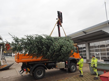 Seit wenigen Tagen stehen im gesamten Stadtgebiet von Uhingen stumme Boten,die auf die Weihnachtszeit einstimmen sollen: Christbäume. Der städtische Bauhof stellte 7 große Bäume in Uhingen,beispielsweise vor dem Rathaus,sowie in den Stadtteilen an markanten Plätzen auf. Hinzu kamen zahlreiche kleinere Bäume für die Kindergärten sowie Grundschulen und weiterführenden Schulen.Der Bauhof stellte die großen Bäume mit 2 Trupps bestehend aus je 2 Angestellten und mithilfe eines Lkw-Kranes auf. Manchmal musste mittels Kettensäge der Baumstamm an die im Boden befindliche Hülse angepasst und verkleinert werden. Und wenn der Stamm dann endlich schmal genug war und in der Bodenhalterung versenkt werden konnte,erfolgte die Feinausrichtung mittels Holzkeilen.Manchmal bekam das Bauhof-Team bei seiner Arbeit Gesellschaft,wie etwa in Nassachtal. Dort brachte ein Anwohner dem Bauhof Kaffee – vielmehr zur Stärkung als zum Aufwärmen. Denn trotz Kälte wurde es den Bauhof-Mitarbeitern durch das intensive Arbeiten mollig warm. Dass der aufmerksame Bürger wusste,was den emsigen Schaffern gut tut,kam nicht von ungefähr: Er klotzte bis vor wenigen Monaten selbst beim Bauhof ran – und nutzte die Gelegenheit zu einem Plausch mit seinen ehemaligen Kollegen. „Einmal Bauhof,immer Bauhof“,sagt Bauhofleiter Dennis Schaser über die schöne Geste des ehemaligen städtischen Mitarbeiters.Doch das Team des Bauhofs rackert nicht nur,sondern geht auch mit genügend Humor an die Arbeit. In Anlehnung an den Brauch des Christbaumlobens sagten sie jedes Mal,nachdem ein Baum stand: „Oh,was für ein schöner Baum!“ war dann zu hören. „Aber anders als beim richtigen Christbaumloben gab es für unsere Trupps weder Schnaps noch Gutsle,sondern die Gewissheit,mit dem Aufstellen der Bäume die Mitmenschen auf die Weihnachtszeit einzustimmen.“Foto (Stadt Uhingen): Insgesamt stellte der Bauhof 7 große im gesamten Stadtgebiet auf und lieferte Schulen und Kindergärten kleinere Exemplare.PM Stadtverwaltung Uhingen12-18