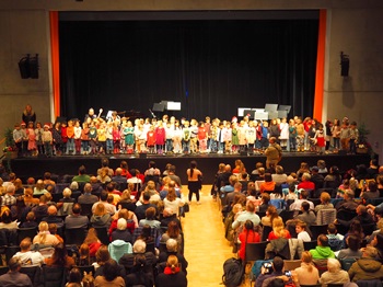 „Wir hatten nicht so viel Zeit zum üben“,hat Yvonne Kolberg,stellvertretende Leiterin der Musikschule Uhingen,den mehr als 350 Anwesenden – Mamas,Papas,Omas,Opas,Tanten,Onkel,Geschwister und Cousins – beim Adventskonzert gestanden. Doch davon war nichts zu hören. Mit Bravour präsentierten die Mädchen und Jungen im Alter zwischen 4 und 61 Jahren auf unterschiedlichen Instrumenten ihre erlernten Fähigkeiten.Die gesamte Bühnenbreite benötigten die Kleinsten: Die Kindergartenkinder der Musikalischen Früherziehung (MFE) trugen von Volker Rosin das Lied „Wisst ihr,was die Frösche machen“ vor,auf der Gitarre begleitet von Sevan Boyaciyan und Henrik Menzlin. Dabei imitierten sie unterschiedliche Tiere,quakten wie ein Frosch oder formten aus ihren Armen den Rüssel eines Elefanten. In der MFE steht die Begegnung mit den elementaren musikalischen Erlebnis- und Ausdrucksweisen im Mittelpunkt.Die gesamte Bühne füllten kurz vor der Pause die Musikschul-Allstars und -Newstars auf,die gemeinsam „Fröhliche Weihnacht“,„Was soll das bedeuten“ und „Jingle bells“ aufführten.Den gesamten Abend über traten die Musikschülerinnen und -schüler mit ihren unterschiedlichen Instrumenten auf: Lina Zepf und Elisea Lanza (Klarinette); Rea Heidle (Klavier); Rebecca Ayrer und Lev Makovetskij (Trompete,Tenorhorn); Luisa Wallmen (Klavier); Leonie Keppeler und Letty Belca (Querflöte); Sebion Kuray (Klavier); Sara Fritsche (Violone); Eric Shen,Pia Mara Karatas und Sara Karatas (Gitarre); Marius Zeller (Posaune); Samira Jester (Klavier); Zohra Schenk (Klavier); Max Zeller (Trompete); Kilian Güttler (Klavier); Lilly Franke (Querflöte); Pia Mara Karatas (Klavier); Aeoleon Fopoussi (Klavier); Lara Heidle (Violine); Alper Kabal (Klavier); Verena Keßler (Klavier); Filiz Baran (Sopranblockflöte),Lara Misikc (Altblockflöte) und Maja Kalosyan (Tenorblockflöte); Martin Schempp (Klavier) und Pia Mara Karatas sowie Sara Karatas (Gitarre).„Sie werden das eine oder andere Lied sicherlich erkennen“,sagte vorab Yvonne Kolberg. Und so war es denn auch. Abschließend dankten die mehr als 350 anwesenden Zuschauer den jungen Künstlerinnen und Künstlern der städtischen Musikschule für deren Darbietungen mit tosendem Applaus. Yvonne Kolberg: „Das Adventskonzert dient auch dazu,dass unsere Schülerinnen und Schüler den Lohn fürs Lernen der Instrumente und ihre damit verbundene Geduld erhalten: den Applaus.“Info: Wer ein Instrument erlernen oder mehr über das Angebot der städtischen Musikschule erfahren will,erhält weitere Infos auf https://www.uhingen.de/musikschule im Internet.PM (Stadtverwaltung Uhingen): Vor vollbesetzten Reihen treten die Schülerinnen und Schüler,hier die Musikschul-Newstars,der Musikschule Uhingen im Uditorium auf.PM Stadtverwaltung Uhingen12-18