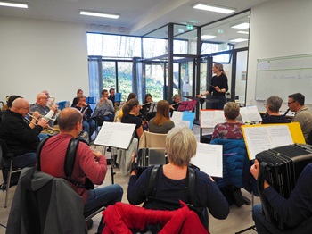 Wie klingt ein so besonderes Jubiläum wie 750 Jahre? Eine Antwort darauf liefern fast 50 Musikerinnen und Musiker aus nahezu allen musiktreibenden Vereinen und Institutionen der Stadt Uhingen. Sie haben sich anlässlich des Uhinger Jubiläumsjahres zu einem Projektorchester zusammengeschlossen,das kürzlich erstmals geprobt hat.„Ich höre alle Instrumente relativ ausgewogen“,sagt Yvonne Kolberg anerkennend. „Ich hatte die Befürchtung,dass bei so vielen verschiedenen Gruppierungen die normalerweise nicht zusammen im Orchester vereint sind einige Instrumente (klanglich) untergehen“, gesteht die stellvertretende Leiterin der städtischen Musikschule vor den etwa 50 Frauen und Männern im „Raum der Musik“,den Proberäumen von Harmonika-Orchester Uhingen (HOU) und Musikverein Uhingen (MVU) im rückwärtigen Erdgeschossbereich des Hallenbades am Haldenberg. Yvonne Kolberg teilt sich mit MVU-Dirigent Achim Ziegele das Dirigat des Projektorchesters. Zusammen mit dem HOU-Vorsitzenden Lothar Bargiel bilden sie das Orga-Team des Projektorchesters.Sie alle eint neben der Liebe zur Musik ein Ziel: Beim Festakt am Freitag,4. April,im Uditorium – dem offiziellen Start des Uhinger Jubiläumsjahres – für den richtigen Takt sorgen. Bis es soweit ist,muss jede Note,muss jeder Takt sitzen. Und davon gibt es einige. Denn in wenigen Wochen sollen inklusive Zugabe 8 Lieder erklingen. Welche Titel zu hören sein werden,soll aber eine Überraschung bleiben. Die erste Probe aber hat gezeigt: Die Frauen und Männer sind auf dem besten Wege,für ein besonderes Klangerlebnis zu sorgen.Doch schon lange bevor nun im „Raum der Musik“ der erste Ton des Projektorchesters erklingen konnte,liefen die Vorbereitungen. Einerseits mussten die Teilnehmenden zusammengetrommelt werden und andererseits die gemeinsamen Termine sowie das „Arbeitsmaterial“ organisiert werden. Jürgen Rothfuß (Klavierlehrer und Chorleiter in Göppingen und Sänger der Band „Blue Stars“) prüfte in den vergangenen Monaten die Noten auf ihre Tauglichkeit für die Vielfalt der Instrumente,die im Uhinger Projektorchester erklingen. „Wo kommt es sonst vor,dass Querpfeifen vom Spielmannszug,Akkordeonorchester,Chor,Schlag-,Holz- und Blechblasinstrumente gemeinsam ein Konzert geben?“,fragt Lothar Bargiel. „Das ist äußerst selten.“Dementsprechend sei die Bedeutung des Uhinger Projektorchesters hervorzuheben,betont auch Uhingens Bürgermeister Matthias Wittlinger. „Ich bin sehr dankbar dafür,dass sich so viele Musikschaffende bereit erklärt haben,für den musikalischen Auftakt in unser Festjahr zu sorgen und es mit ihrem künstlerischen Einsatz zu begleiten und zu bereichern“,sagt der Bürgermeister. Er wisse von keiner anderen Gemeinde,die mit einem solchen Projektorchester auftrumpfen könne. „Das ist für uns ein Aushängeschild,auf das wir und alle Bürgerinnen und Bürger aus Uhingen stolz sein können!“Bei der ersten Chorprobe ging es aber nicht nur um harmonische Töne,sondern auch einen harmonischen Look. Denn für das Konzert am 4. April beim Festakt (Beginn um 19 Uhr im Uditorium) und einen Auftritt am 10. Mai beim HOU-Frühjahrskonzert (Beginn: 19.30 Uhr im Uditorium) soll das Projektorchester Uhingen auch entsprechend einheitlich aussehen. Die Stadt Uhingen kleidet die Mitglieder des Projektchores aus Dankbarkeit für deren freiwilligen Einsatz mit einem eigens bestickten Poloshirt aus,das über die Modewelten Frey beschafft wird. Und damit das Outfit passt,erfolgte in einer Probenpause eine Anprobe.Info:Mit dem offiziellen Festakt von Uhingens 750 Jahr-Feier erfolgt der Auftakt der Jubiläumsveranstaltungen im Jahr 2025. An diesem Abend wird auch das neue Buch zur Stadtgeschichte von Kreisarchivar Dr. Stefan Lang vorgestellt. Die Veranstaltung wird musikalisch begleitet vom „Uhinger Projektorchester 2025“,das sich aus Musikschaffenden und Sängern der vielfältigen Uhinger Einrichtungen gebildet hat. Geleitet wird das Projektorchester von Yvonne Kolberg (Musikschule Uhingen) und Achim Ziegele (Musikverein Uhingen).Uhingen und neun andere Gemeinden aus dem Kreisgebiet feiern im Jahr 2025 ein historische Begebenheit. Denn in einem Dokument,der „Liber Decimationis“ aus dem Jahr 1275 wurden die Gemeinden erstmals urkundlich erwähnt. Neben Uhingen handelt es sich dabei um Albershausen,Donzdorf,Dürnau,Hattenhofen,Ottenbach,Salach,Schlat,Schlierbach und Steinenkirch. Die besondere Erwähnung vor 750 Jahren wird auf ganz unterschiedliche Art und Weise gefeiert. Das ist in Uhingen in diesem Jahr geboten: ab April Stadtrallye der Stadtbücherei Freitag,4. April: Festakt im Uditorium Samstag,5. April: SWR3 Party im Uditorium Sonntag,6. April: Vernissage „So war’s! Uhingen in historischen Ansichten“ im Berchtoldshof Mittwoch,14. Mai: Stadtführung „Uhingen am Wasser – Von Mühlen,Brücken,Brunnen und Hochwassern“ Samstag,17. Mai: „Radtour durch 3000 Jahre Geschichte“ mit Albershausen,Schlierbach und Hattenhofen Freitag,23. Mai: Vernissage „Uhinger Geschichte – Geschichten“,Federzeichnungen von Friedrich Schurr im Rathaus Samstag,24. Mai: „Danzfest“ des Schwäbischen Albvereins im Uditorium Freitag,27. Juni: „Nacht der Offenen Kirchen“ Samstag,28. Juni,Sonntag,29. Juni: Kandelhock mit Festumzug,Lasershow und Fun für Kids Sonntag,20. Juli: Gau-Kinder- und Jugendturnfest Donnerstag,31. Juli: Freibadfest Freitag,26. September: „750 Jahre Uhingen – Markus Zipperle schwätzt über älles,auch über Uhingen“ im Uditorium Sonntag,28. September: Sparda Xtrem Uhingen,Uhinger Sonntag,Entenrennen und Fest der MusikWeitere Informationen zu den einzelnen Veranstaltungen stehen auf www.uhingen.de/750Jahre im Internet.Foto (Stadt Uhingen): Im „Raum der Musik“ proben die fast 50 Frauen und Männer des Projektorchesters acht Stücke. PM Stadtverwaltung Uhingen12-18