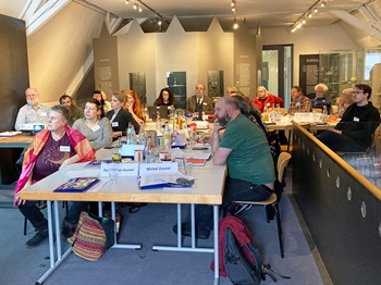 Foto (Daniela Bittner): Bild von den vielen Teilnehmern,an der Stirnseite sitzen Jürgen Heinritz und Dr. Valerie Schoenenberg.