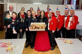 Natürlich nahm sich OB Dehmer wieder etwas Zeit für seine Gäste und bewirtete die sie mit einem kleinen Imbiss,bevor diese sich auf den Weg in die „Narrhalla an der Fils“ zur Faschingsparty machten. Dabei vergaßen Sie natürlich nicht auch den Rathausschlüssel (in Form eines Laugenschlüssels) wieder an sich zu nehmen.