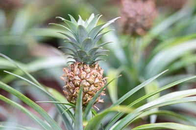 Eine Bromelienart tanzt komplett aus der Reihe – und zwar die bekannteste von allen: Die Ananas. Sie ist nämlich die einzige Bromelie,die eine große,für Mensch und Tier wohlschmeckende Frucht hervorbringt. Bei dieser handelt es sich genaugenommen um eine Scheinfrucht aus zahlreichen miteinander verwachsenen Beeren. Die Ananas gehört zu den wenigen Bromelien,die direkt am Erdboden gedeihen.