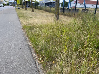 Fotos (Bildquelle: Stadt Eislingen): Abschnittsweises Mähen bietet ausreichend Rückzugsräume und Nahrung für Insekten auf öffentlichen Verkehrsgrünflächen