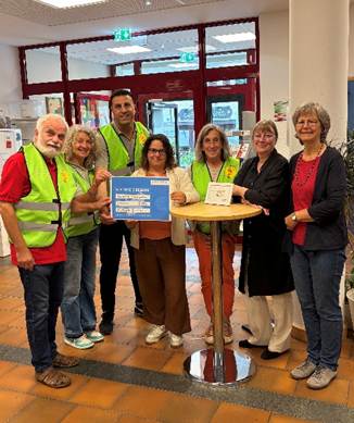 Als Vertreterinnen der Stadt Geislingen nahmen Sonja Pfau,Umweltbeauftragte der Stadt und verantwortlich für die Aktion Stadtradeln,sowie Christine Pfundtner vom Team Bürgermitwirkung im Mehrgenerationenhaus an dem Termin teil. Für das Albwerk überreichte Maria-Pia Morrone,Leiterin Marketing & Unternehmenskommunikation,symbolisch den Spendenscheck an Manuel Kuray von der Bürgerinitiative „Clean up Geislingen“.