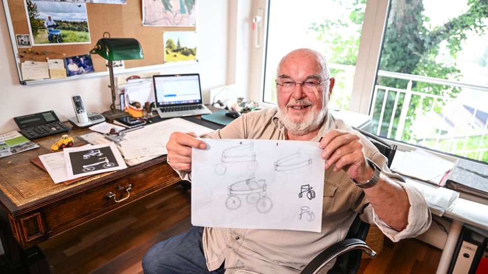 Trotzt allen Widrigkeiten: Privattüftler Gerhart Wissel mit einer Zeichnung seines »e-Hikers«