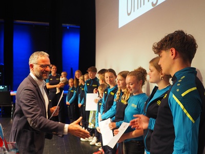 „Ich bin fasziniert von der Vielzahl an jungen Menschen,die sich für den Sport interessieren und sich regelmäßig in Wettkämpfen messen“,zollte anschließend Matthias Wittlinger allen Respekt. Es erfülle ihn mit Stolz,dass Uhingen so viele und so erfolgreiche Sportler hervorgebracht habe. „Das zeigt auch,dass die jährlichen Investitionen der Stadt Uhingen in die sportliche Infrastruktur wie etwa in diesem Jahr in einen neuen Tartan-Belag im Haldenberg-Stadion oder die Vereinsförderung auf fruchtbaren Boden fallen.“