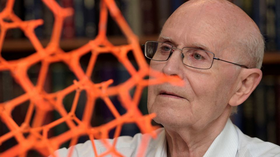 Nobelpreisträger Robson mit Modell einer metall-organischen Gerüstverbindung: Oberfläche wie ein ganzes Fußballfeld