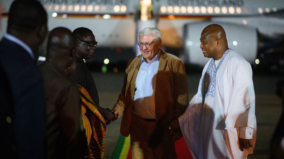 Steinmeier war am Sonntagabend in Ghanas Hauptstadt Accra eingetroffen. Er wird am heutigen Montag Gespräche mit dem ghanaischen Präsidenten John Mahama führen. Der Bundespräsident wird von einer Wirtschaftsdelegation begleitet.
