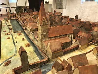 Im Zentrum der Ausstellung stehen Modelle von markanten Geislinger Stadtteilen und Gebäuden. Wahrzeichen wie der Ödenturm und der Alte Zoll sind ebenso zu sehen wie Miniaturen von Bauwerken,die einzelne Stadtbezirke prägen oder geprägt haben. Schließlich ermöglicht der Modellbau auch Zeitreisen,etwa in die 1960er Jahre,als historische Bausubstanz durch Abriss für immer verloren ging und nur noch Modelle an manch prägendes Gebäude erinnern. Bis ins Mittelalter geht es dabei mit der Darstellung des Lindenhofs oder der Burg Helfenstein zurück. Umgekehrt zeigt manche Miniatur Bauprojekte die nie in der Realität umgesetzt wurden,das Stadtbild dann jedoch stark verändert,wenn nicht gar zerstört hätten.