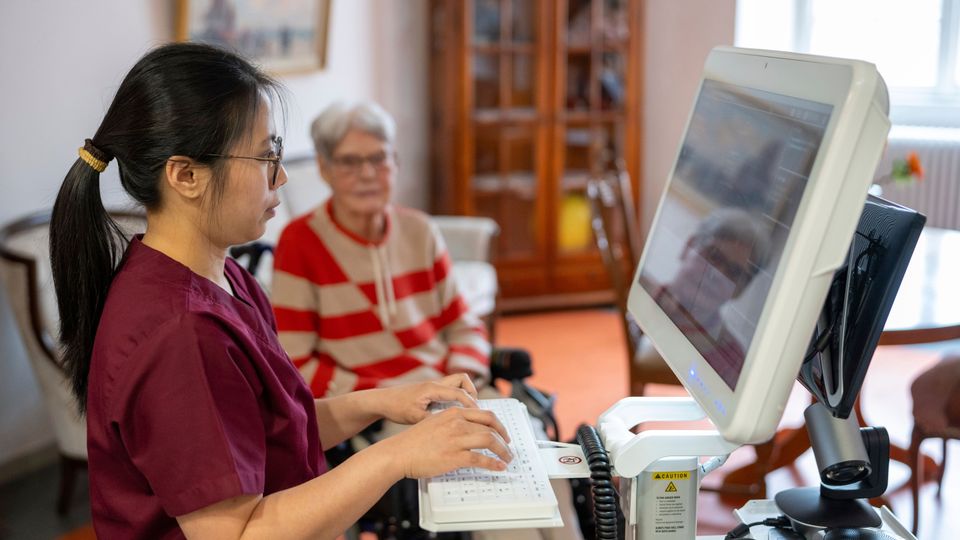 Altenpflegerin,Bewohnerin in einem Pflegeheim in Trier