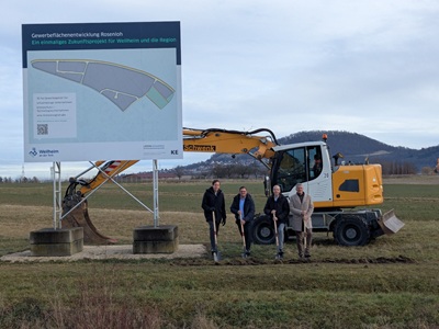 Tatsächlich begann die verkehrliche Erschließung des Gewerbegebiets Rosenloh bereits im vergangenen Sommer mit dem Bau eines Kreisverkehrs an der bisherigen Kreuzung beim Gewerbegebiet Tobelwasen. Mit dem nun erfolgten Spatenstich starten jedoch die eigentlichen Erschließungsarbeiten: Straßen werden angelegt und die Versorgung der einzelnen Gewerbegrundstücke vorbereitet.