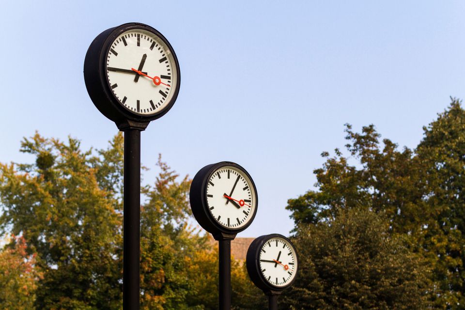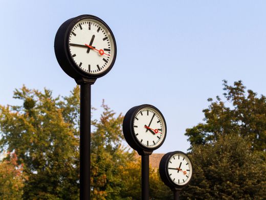 Bahnhofsuhren im Volksgarten Düsseldorf