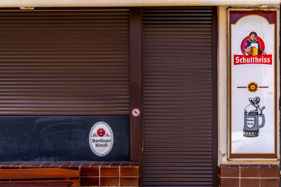 Kneipe in Berlin-Charlottenburg mit heruntergelassenen Fensterläden