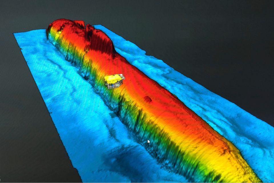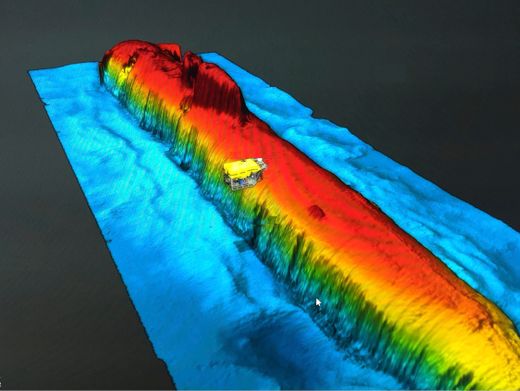 Dieses mit einem Seitensichtsonar aufgenommene Bild zeigt das Wrack der »Komsomolez« am Meeresboden der Norwegischen See