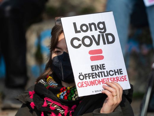 Frau bei einer Kundgebung für Betroffene von Long Covid 2025 in Berlin: Unerträgliche Müdigkeit