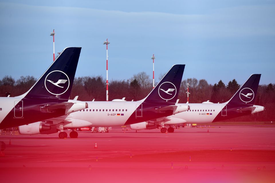 Lufthansa-Flugzeuge parken auf dem Hamburger Flughafen